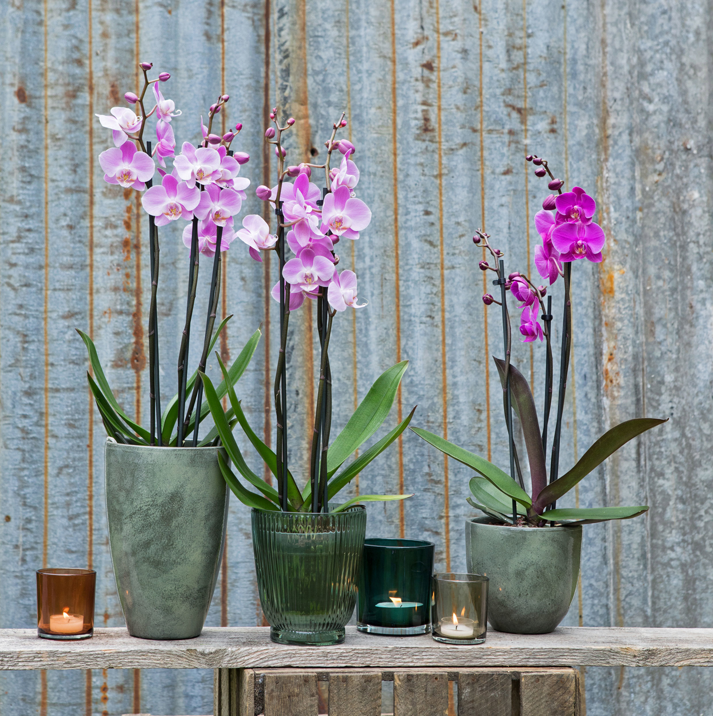 Omplantering behövs bara med 2–3 års mellanrum eller när orkidéerna håller på att växa ur sin kruka. Plantera om dina orkidéer i särskild orkidékompost som är mager och luftig. Byt inte till för stor kruka. Då tar det längre tid för komposten att torka upp mellan vattningarna och risken för övervattning ökar.