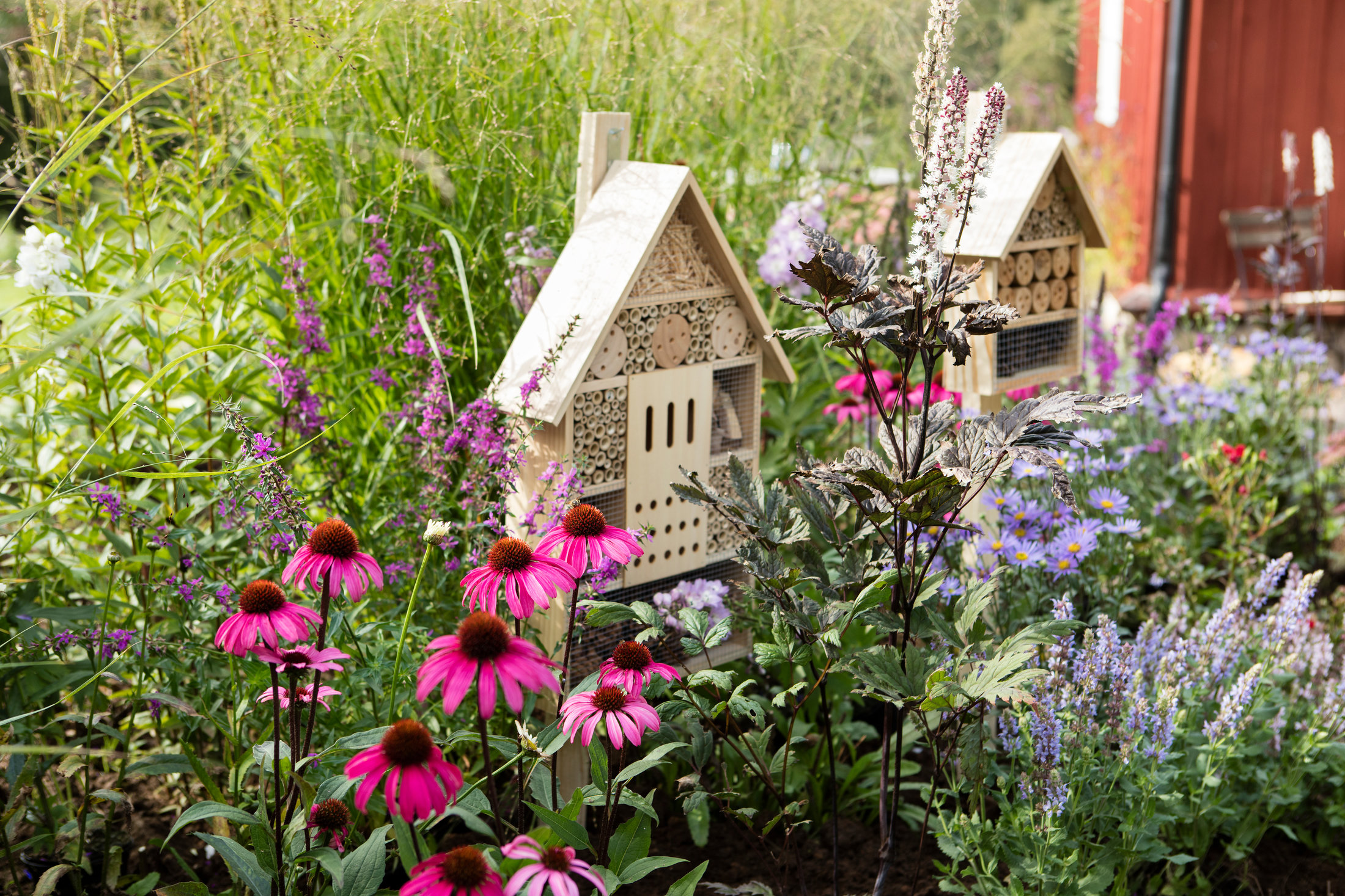 Lite lagom vilt kanske man också kan säga lockar till sig pollinatörer. Vildbin bosätter sig gärna i gammalt trämaterial, så har man en gammal stubbe kvar kan man med fördel testa att borra hål i för att hjälpa bina på traven. Gillar man inte den vilda stilen går det bra att sätta ner gamla trädelar som får bilda insektshotell.